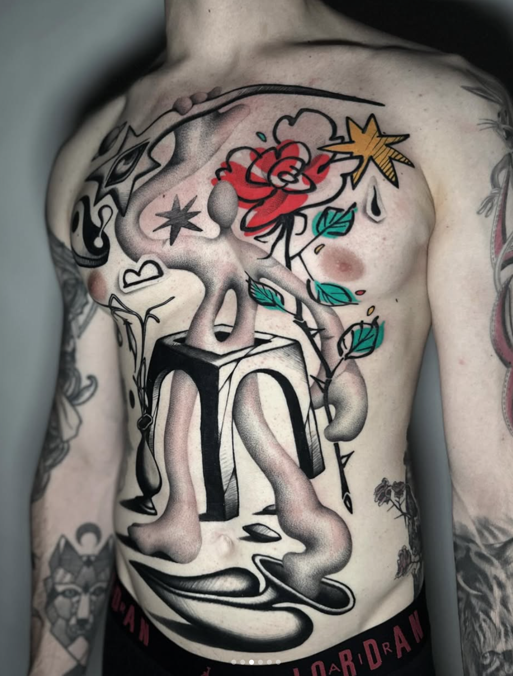 Blackwork, abstract/surreal, realism, bold, cyber.